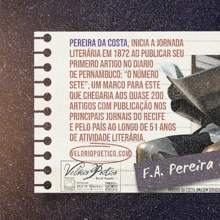 Com a palavra Bruno Melo, pesquisador que é o organizador do livro Os bispos de Olinda, que será lançado neste mês de novembro, Ele fala sobre a obra e apresentará ao público seu autor F. A. Pereira da Costa, um dos mais expressivos historiadores para preservação de nossa memória, neste ano que marca o centenário de seu falecimento,